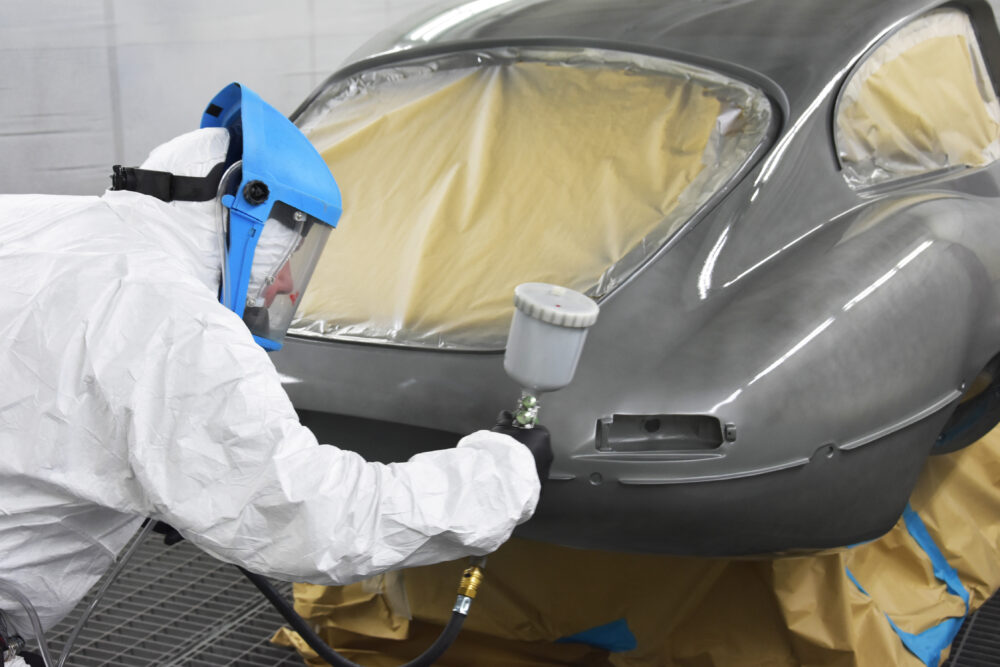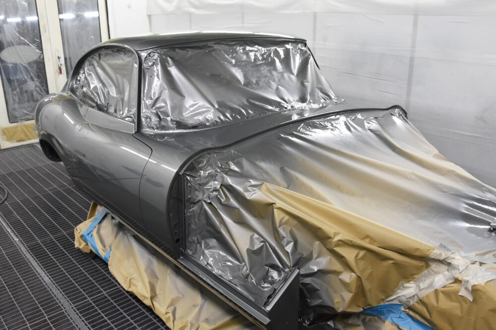 With the body shell and iconic 60’s lines and gaps perfected, this incredibly significant E-type was handed on to the paint team for a stunning coat of Opalescent Silver Grey. To achieve the perfect finish the car was subjected to 60 hours of polishing – the only way to truly appreciate the quality of the new paint finish. The interior has also been updated, with completely new electronics, dashboard, black leather seats, dials and pedal box – all sourced or hand-crafted by the in-house team.