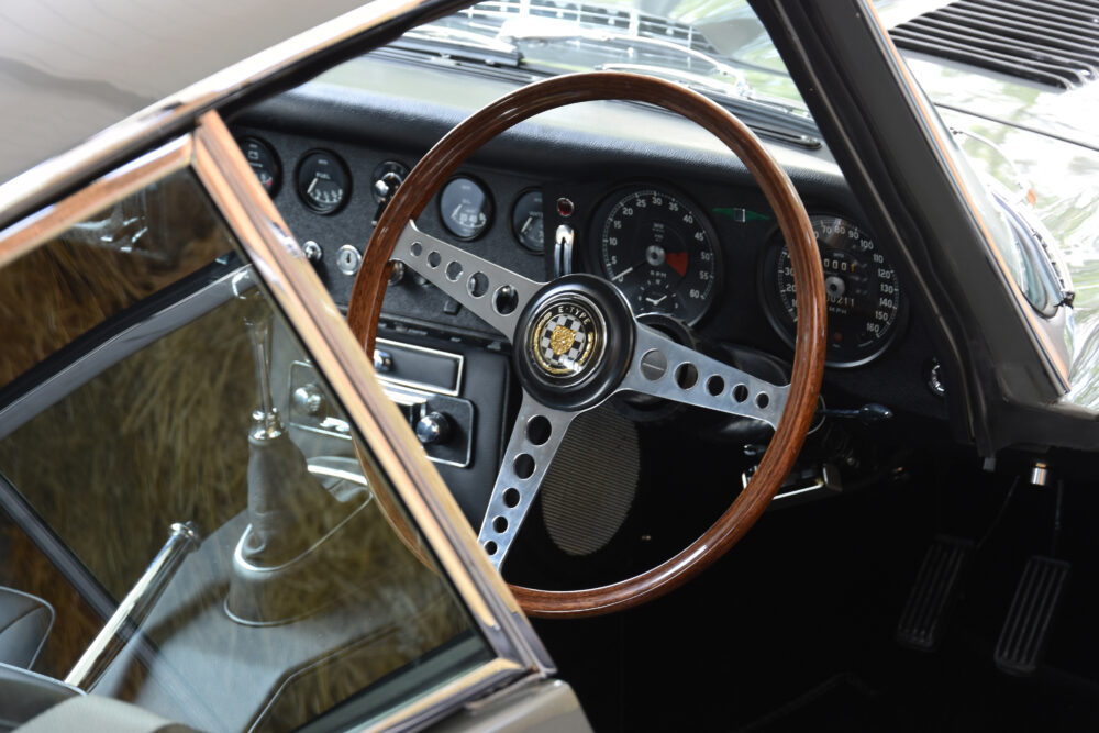 As would be expected, most of the engine components were unusable, but some parts were salvaged in the hope of keeping as much of the car’s wonderful character as possible. The original cam covers and cylinder head have been painstakingly machine-polished – certainly to a higher quality than the car left the Coventry factory some half a century ago. The powertrain has also been fitted with an uprated stainless-steel sports exhaust with tubular manifolds, creating a beautiful 4.2-litre symphony from beneath the iconic sweeping bonnet.