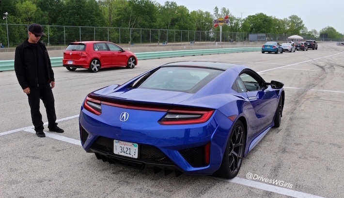 The pit lane light turned green and the Nouvelle Blue Pearl NSX shot into near-triple digits in no time. Wandless smoothly maneuvered turns one and two before really giving it the beans at the Sargento Cheese straight, where even a couple of cone modifications designed to slow the cars down proved to be useless against the 573 horses that insisted we didn’t do so at all. After hitting 139 mph in a matter of seconds, Wandless smashed the brakes, pitched the car into the apex, and used the NSX’s electric-motor-driven all-wheel drive to rocket out of the turn and continue defying the laws of physics.