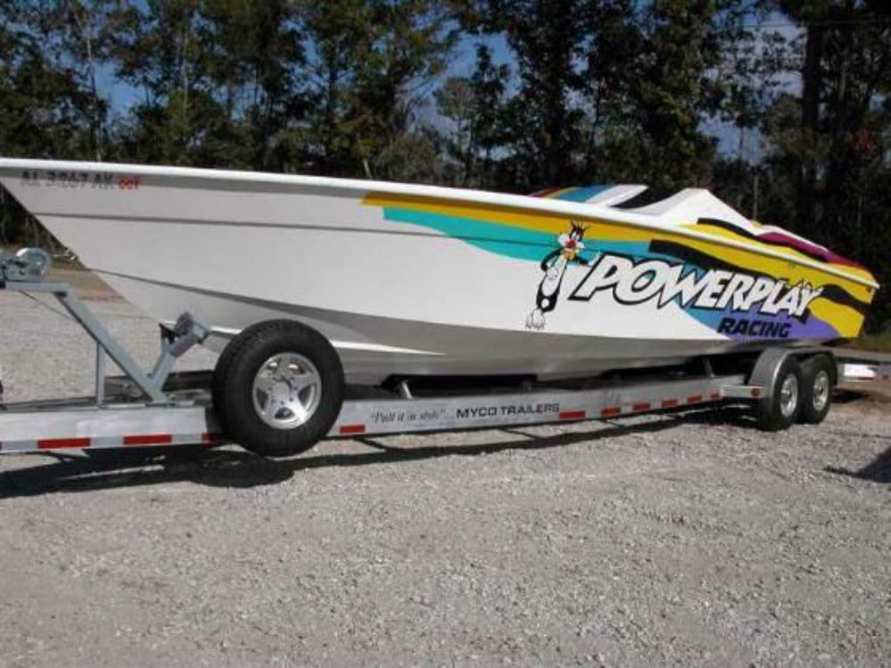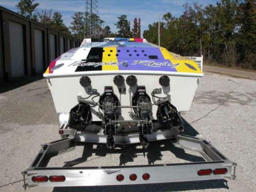 Here’s an example we’ve dusted off from the sub-forum. Back in 2011, Blackrifle talked about his rainbow-tastic PowerPlay 33-foot cigarette boat with a custom-built trailer to haul it to the ramp for a day of oceanic destruction. According to him, it had a “3 man bolster, full race setup” backed by a staggered pair of Mercury Racing 500 motors good for around 1,000 hard-charging seahorses.