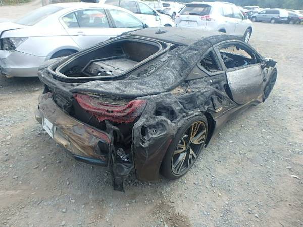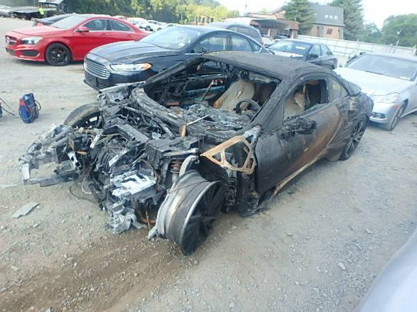 According to the ad, the majority of the rear of the car is still good. That includes rear motor, transmission, wheels, subframe doors and brakes, and the battery. The ad even claims the full-carbon tub is undamaged, but I would be worried about the excessive heat softening the resin, and potentially weakening the structure.