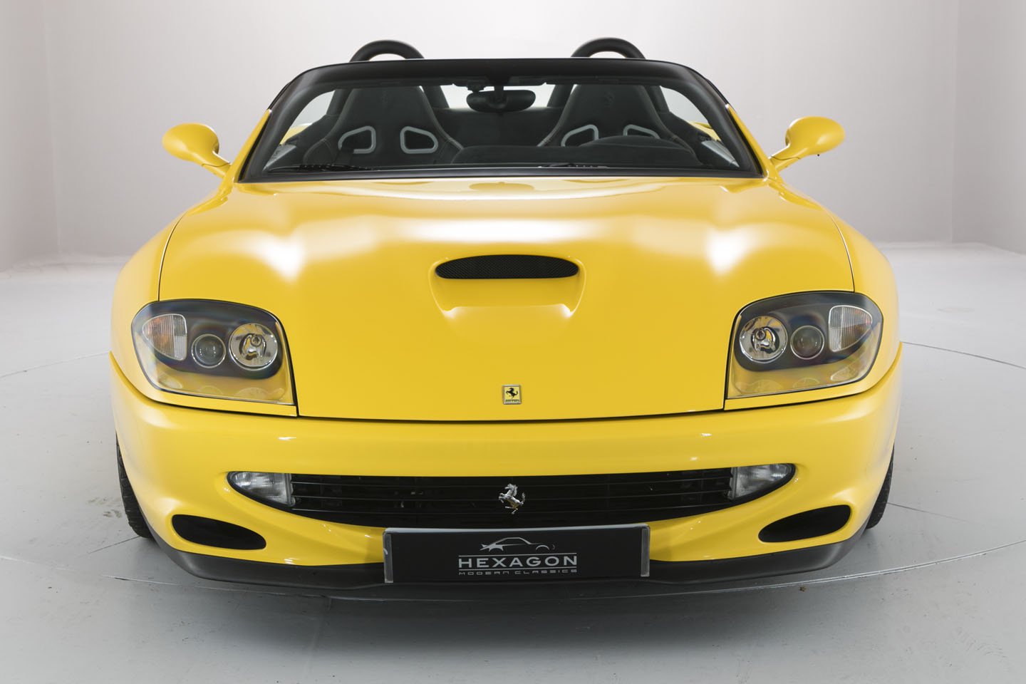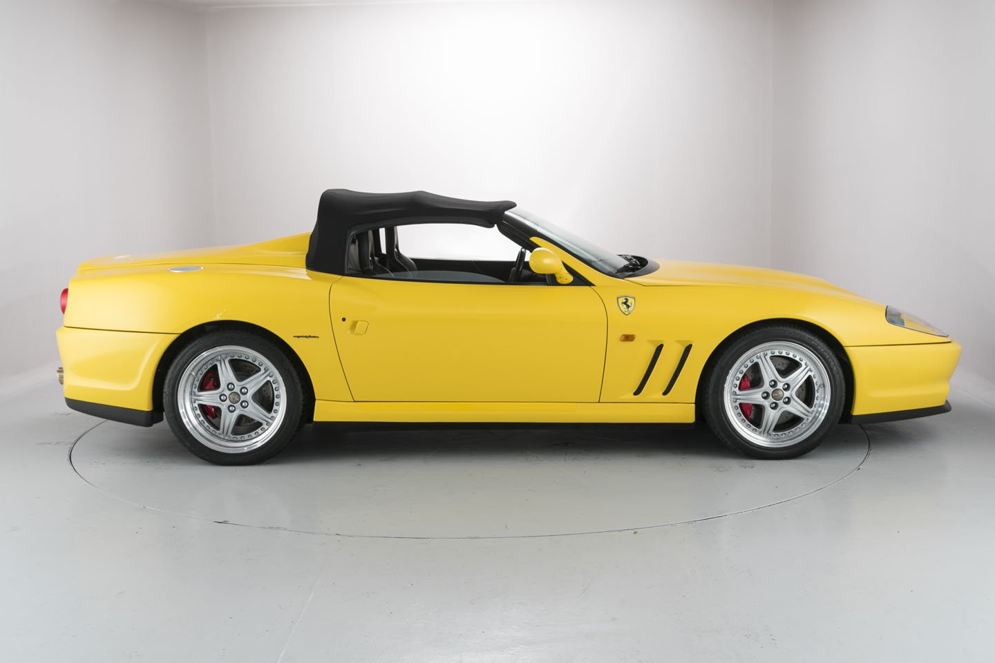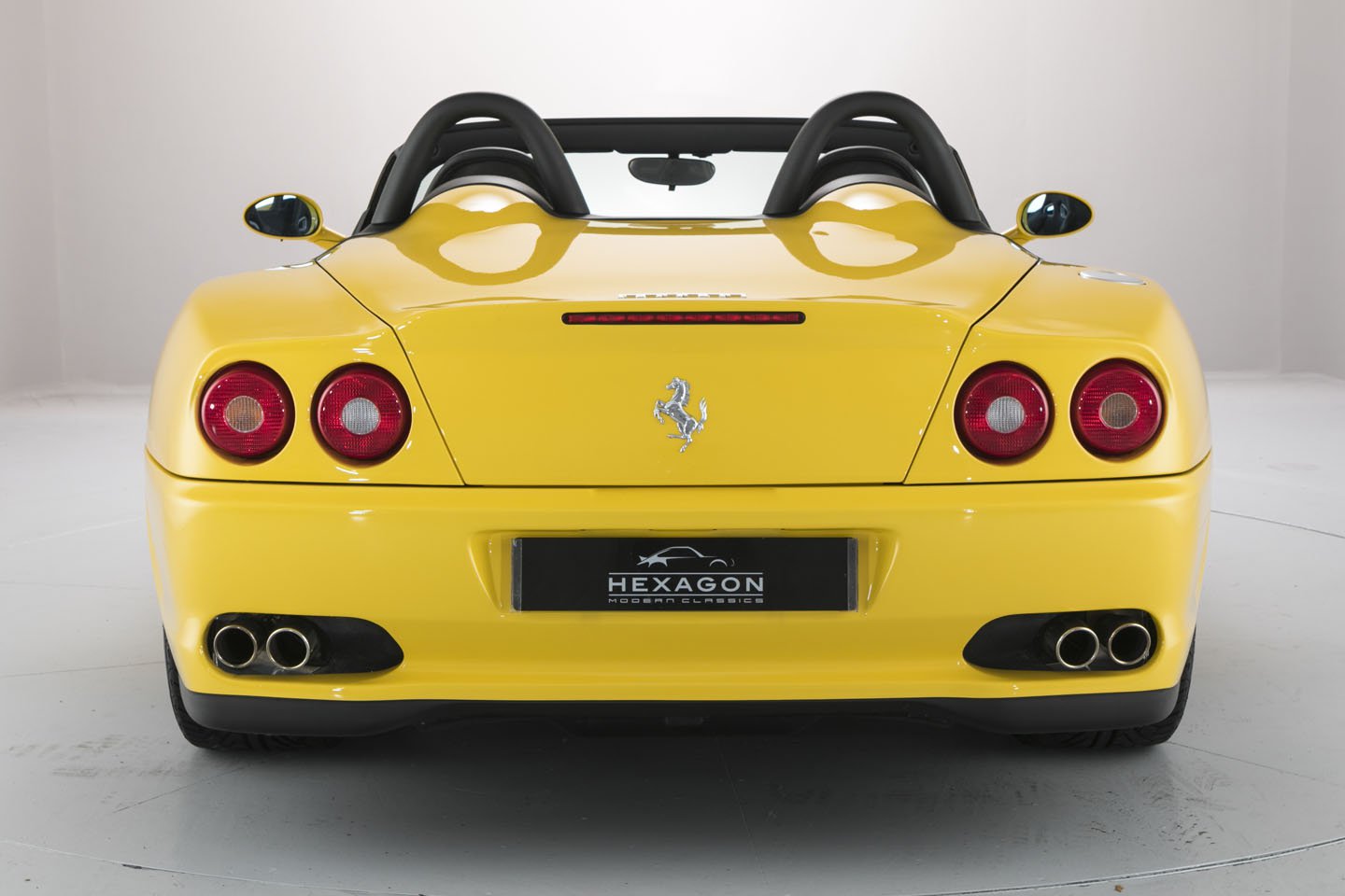 Production of the special edition convertible, race-oriented 550 began in 2000 and only 448 came off the line. It’s named for the 70th anniversary of Ferrari’s famous coachbuilder and stylist. Though it comes with a soft top, the extra piece can be used temporarily, but the car was intended to prance without it. Ferrari literally calls it an emergency top.