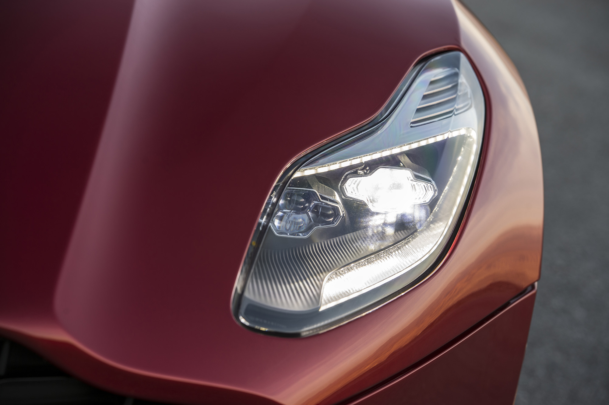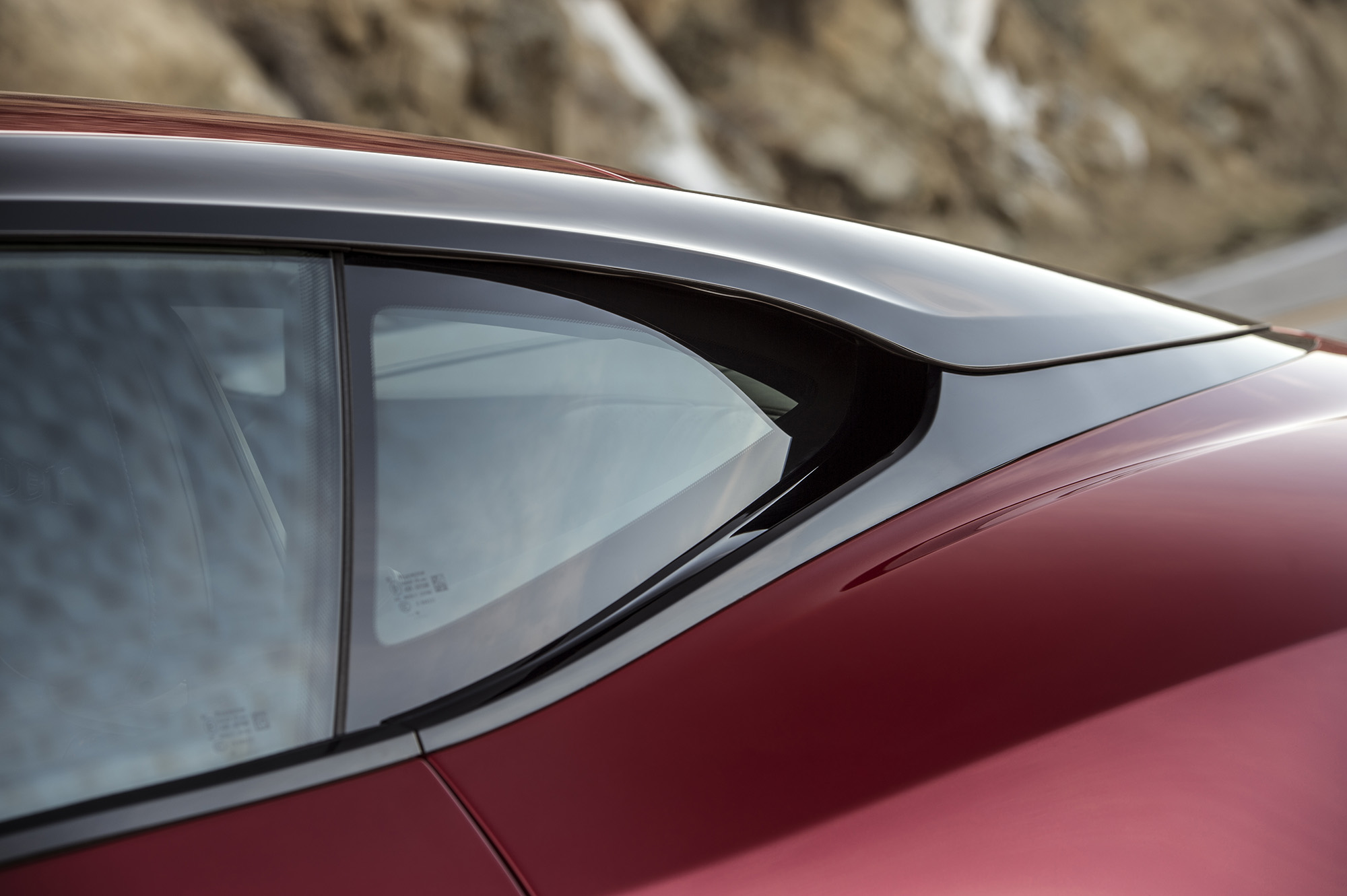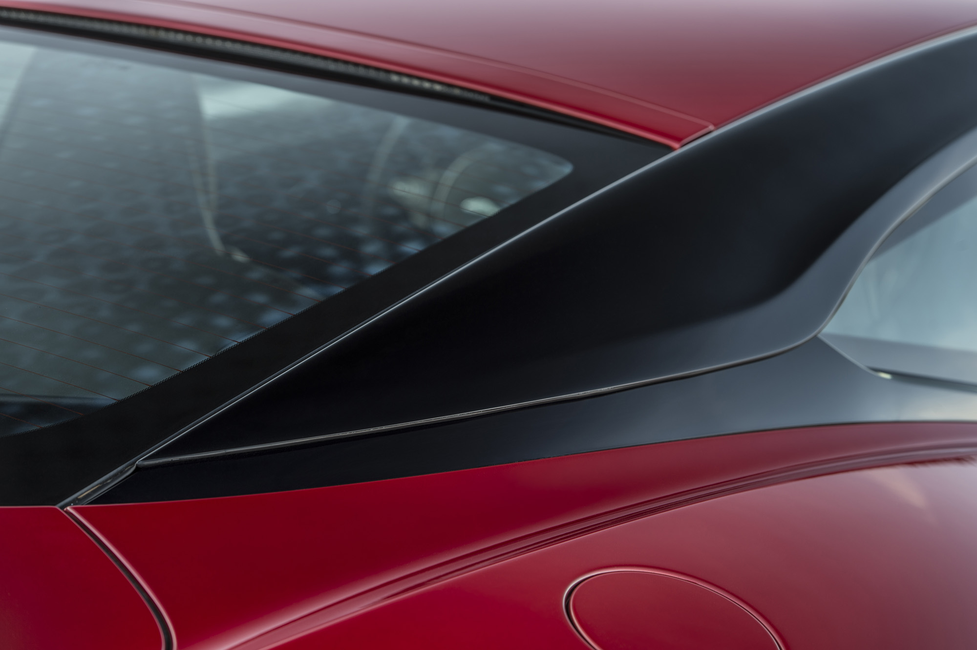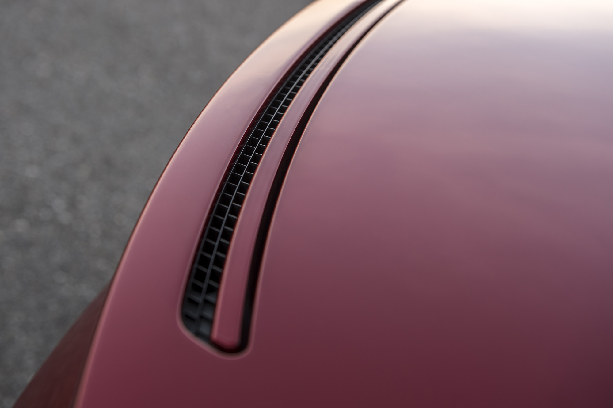 The Curlicue is an air vent that flows off the front wheel arches not only in design, but in practice, too. High-pressure air that accumulates at the tops of the wheel arches exits the vents, thus reducing front-end lift. That air is then directed along the aluminum flanks to intake slots located at the bases of the C-pillars.