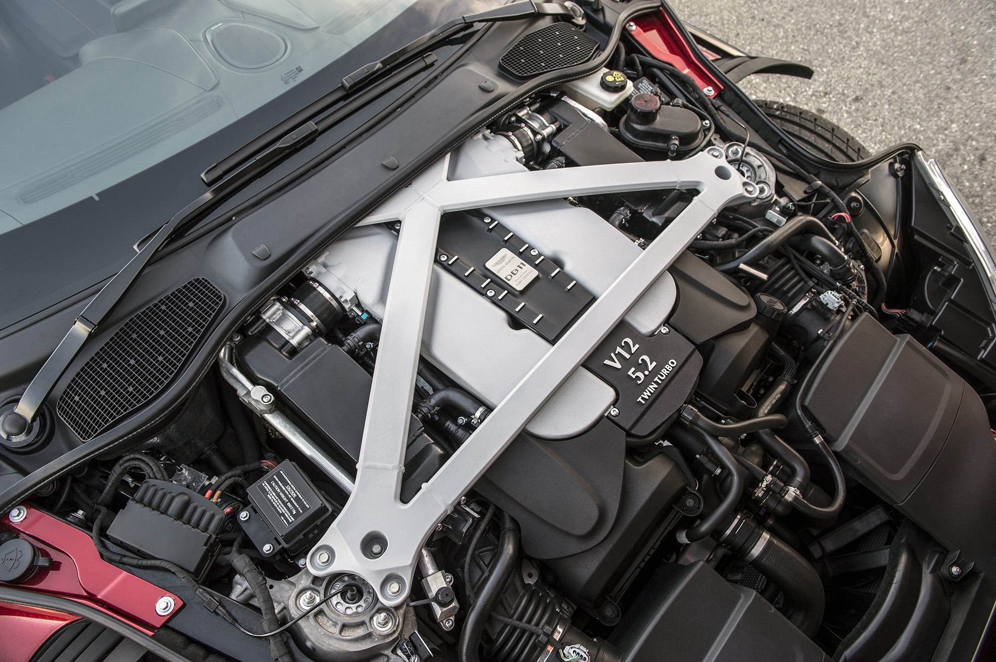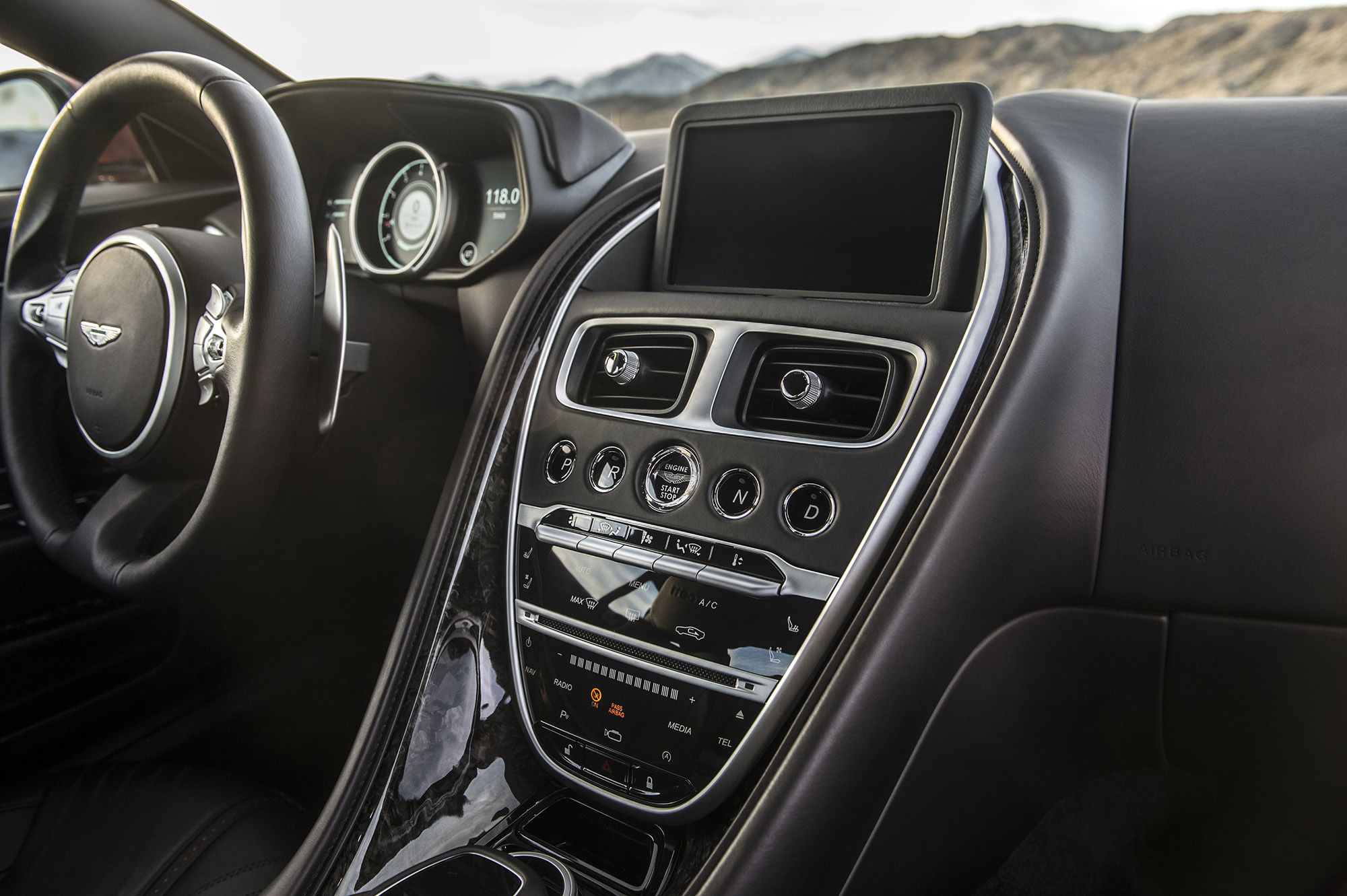 The industry-leading looks are backed up by solid engineering, too. Under the clamshell hood (it took Aston Martin a year to find a supplier to construct the complicated piece of aluminum) resides a new, Aston Martin-designed, 5.2-liter twin-turbocharged V12. Output is 600 horsepower and 516 lb-ft of torque. That’s enough to get this 4,000-lb. automobile to 60 mph in 3.8 seconds on the way to its 200-mph top speed.