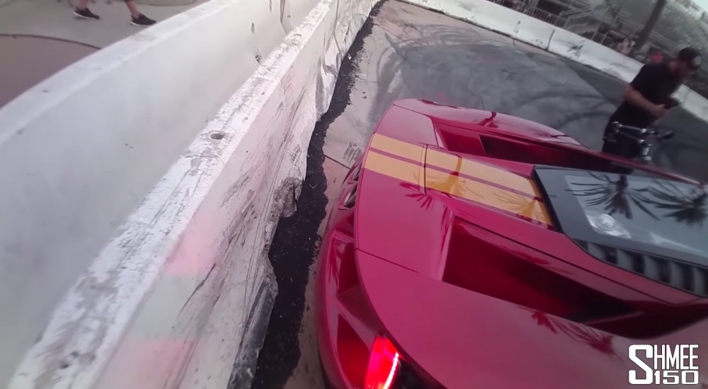 Recently, YouTuber Tim “Shmee150” Burton brought his GT to California for a stop at Los Angeles’ own Galpin Auto Sports, where it would receive a new set of Michelin Sport Cup 2s. Before that, though, he popped over to Irwindale, California’s Irwindale Speedway, the home of the Hoonigans Burnyard, to send off the original set in style.