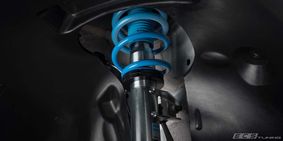 “Well, we decided the stock 4×4 esk ride height just wasn’t going to work, and the spring rates and dampening could use a little tweaking. Lucky for us our partner Bilstein was able to supply us with a B16 (PSS10) Coilover Kit, and with that, the transformation from stock to stunner begins.”