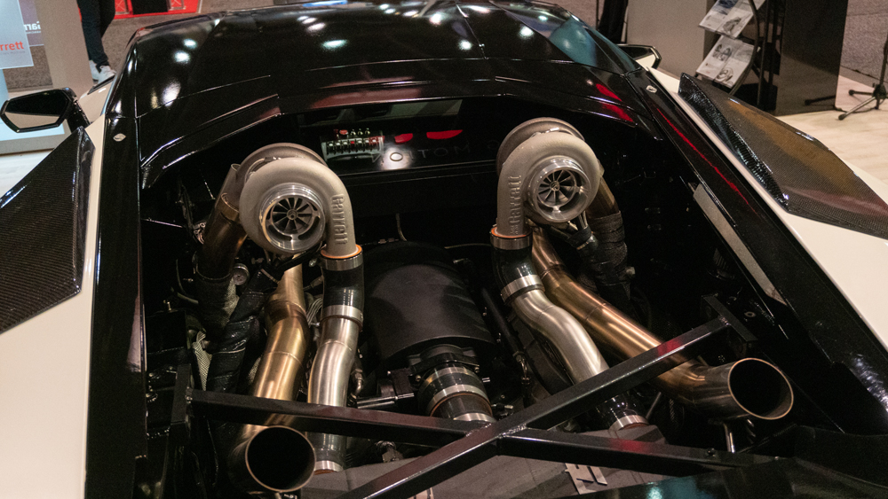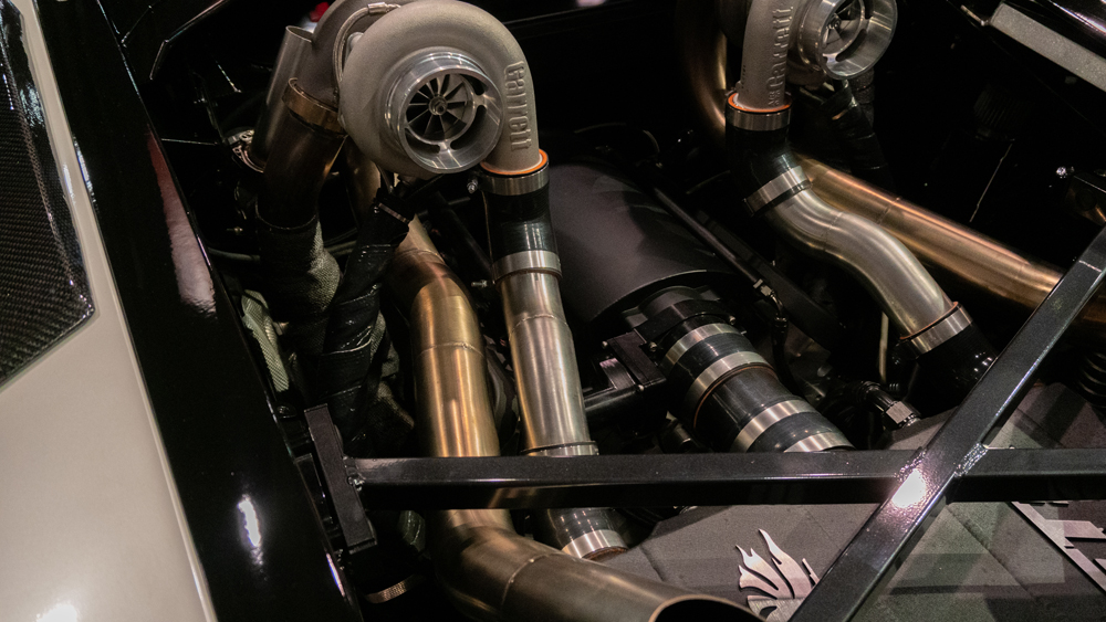 This means, then, that merely bolting the beastly V10 up to the trans would be child’s play, right? Well, it’s not quite that simple, but Steinbacher again took a never before seen direction. Instead of the screaming Italian ten-cylinder, a twin-turbocharged Texas Speed LS engine powers this monster. It is said to make 1,500 wheel horsepower. That’s more than enough to give you the ride of your life.