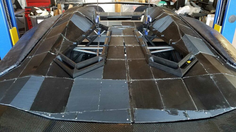 Backus then prints each panel in small pieces using three 3D printers he purchased from Amazon. The pieces are then glued together, wrapped in carbon-fiber Kevlar, and sealed using vacuum encapsulation. In true DIY fashion, Backus learned how to do all of this by watching YouTube videos. Even better, he plans on completing the entire build on a shoestring budget of just $20,000.