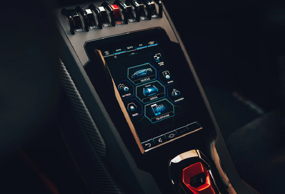 An HMI 8.4” touchscreen in the Spyder’s center console controls the car’s functions as well as providing comprehensive connectivity for telephone calls, Internet access, and Apple CarPlay.