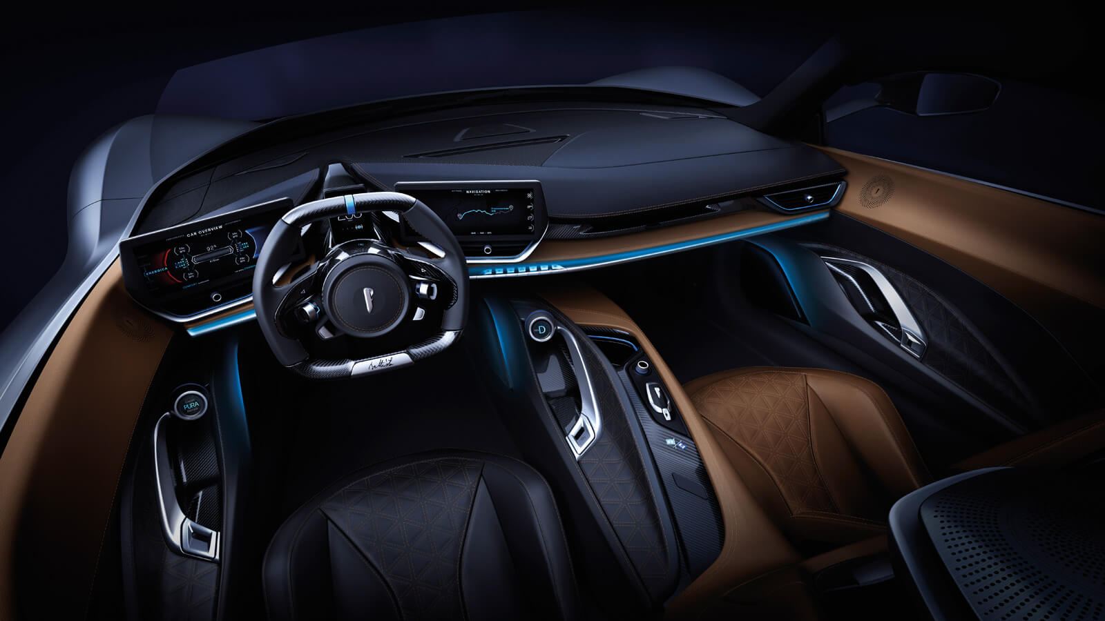 In hosting the powertrain of the future in an elegant yet functionally efficient carbon fiber body and chassis featuring double wishbone coil over suspension, the Battista will shatter traditional performance targets set by machinery powered by any internal combustion engine. Yet it will do this with a focus on luxury and drivability that offers a targeted 279 mile range, and a level of comfort and connectivity that will tempt owners to take to the roads more than the track.