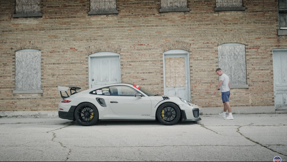 But, he wants to know how it fares against his GT3 Cup car, Porsche’s lightweight no-nonsense track car. On paper, the 2 RS can at the cup car’s lunch, with a 240 horsepower advantage over the 460-horse racer. But the GT3 is far more flingable, tipping the scales at just about 2,700-pounds. To settle the score, he taps professional driver Bryan Sellers to take both cars out on Road America on the same day to see who can land the best lap time.