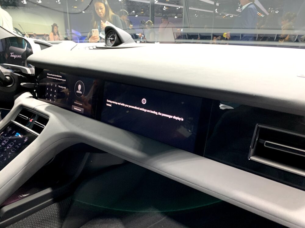 Since this is the car’s first time in the U.S., we were finally able to get hands on with it at the Los Angeles International Auto Show. On display was a blue Taycan 4S and a white Taycan Turbo S. Porsches signature curves are unmistakable. Design cues from the Mission-E concept are largely carried over, most obviously with the lighting up front.