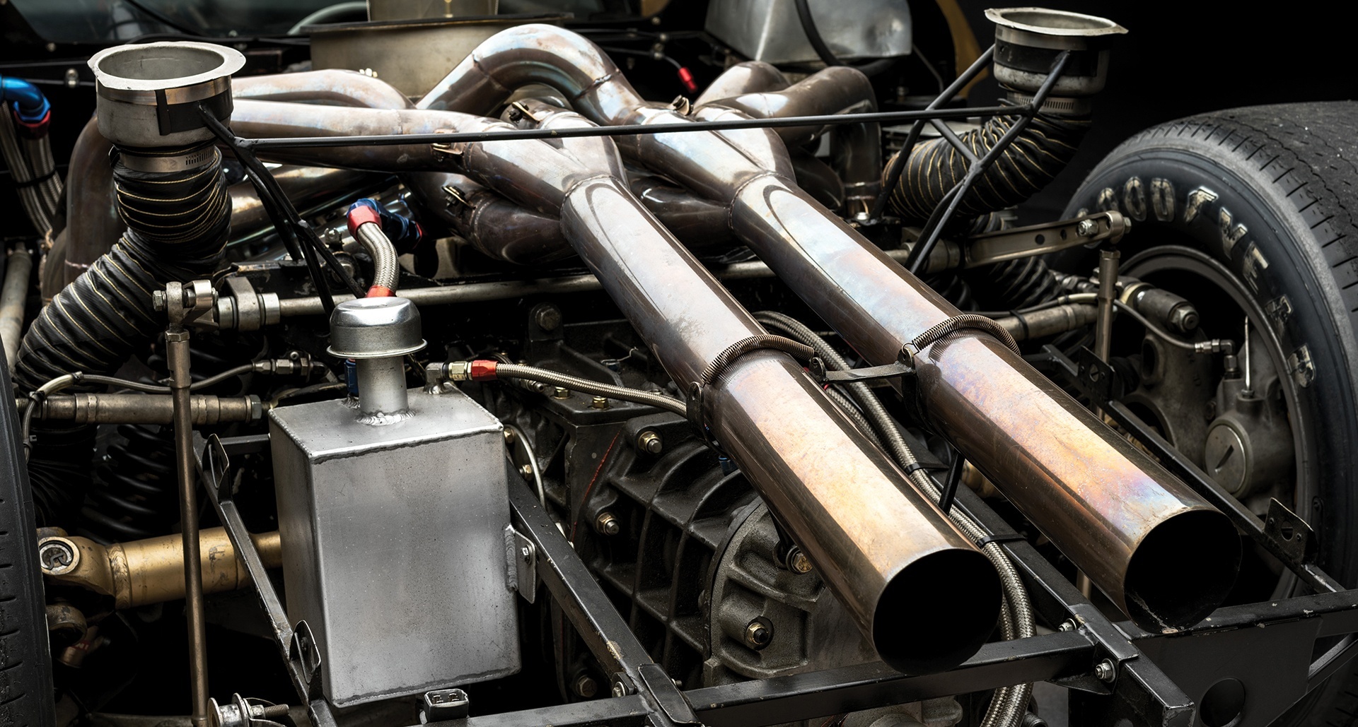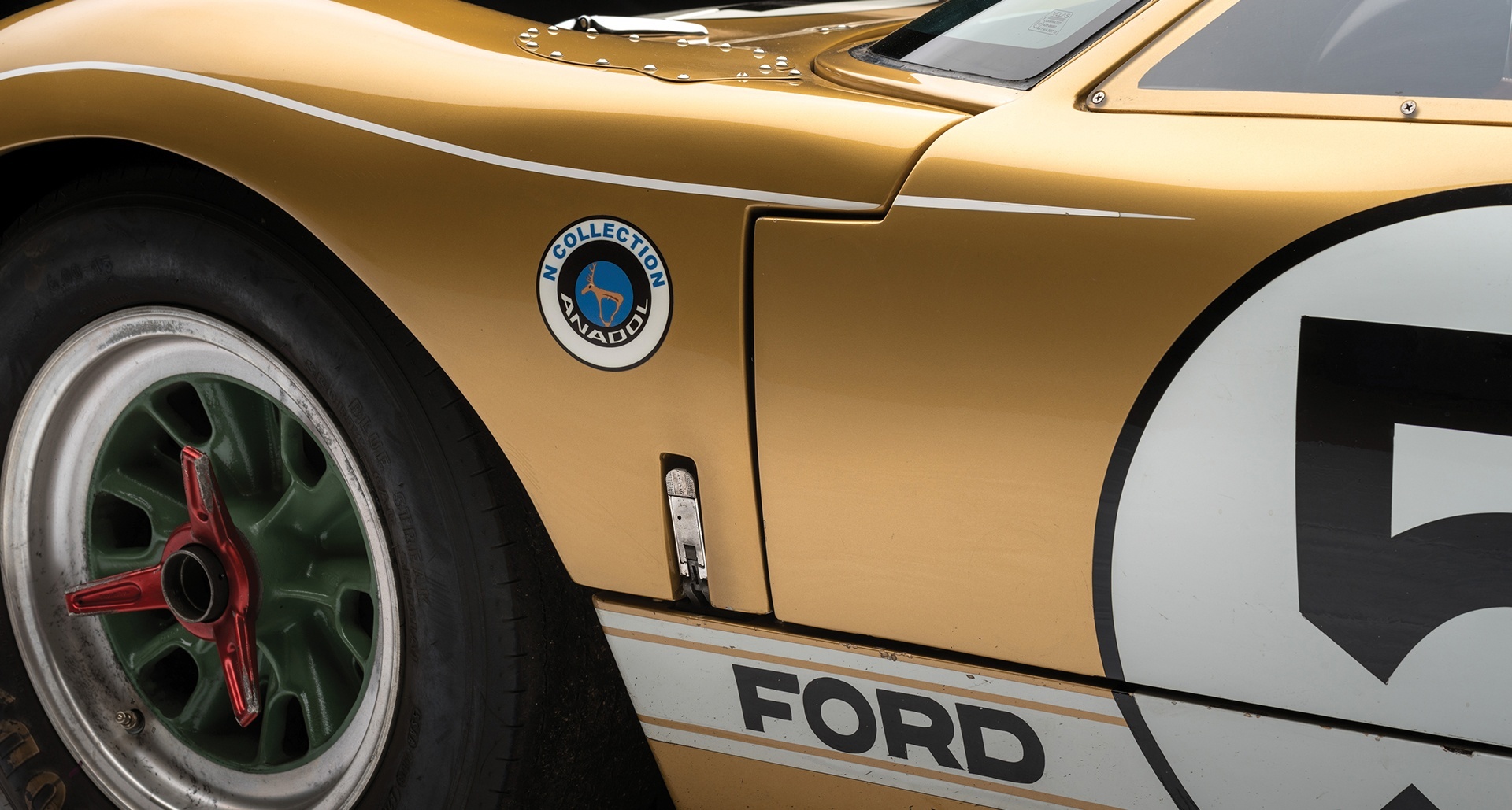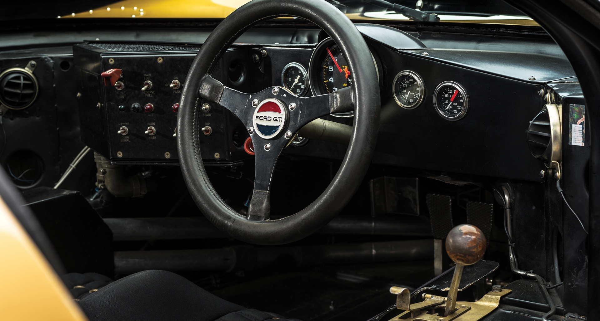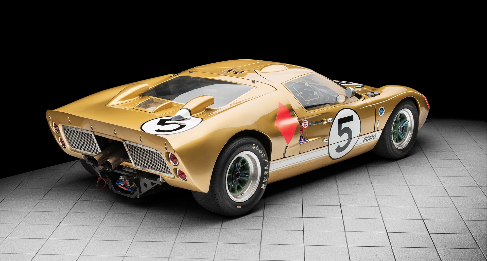 The 1966 Ford GT40 chassis number P/1016 placed third at Le Mans and also competed at 24 Hours of Daytona and 12 Hours of Sebring. Powered by a 427 cubic-inch engine, this powerful beast is still pristine in its sleek gold livery.