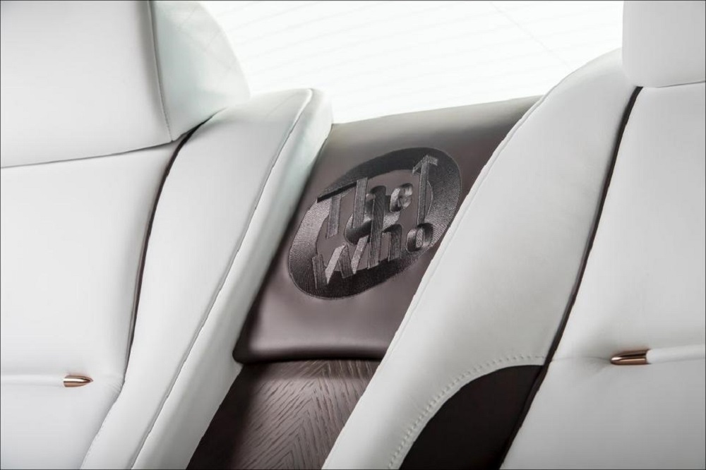 Daltrey designed two Wraiths. The first pays homage to The Who, with the band’s famous bullseye logo adorned on the dashboard clock and embroidered on the leather “waterfall” between the two back seats. The back of the driver’s seat headrest is embroidered with a picture of Keith Moon’s famous exploding drum set.