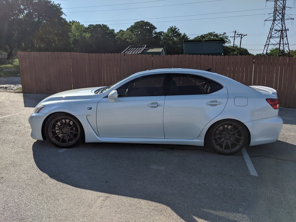 “Car was stock till 2 years ago, did a couple mods,” says the Club Lexus member, who is asking $23,500 for the 2009 Lexus ISF SFP. “Flat bottom steering wheel w/black carbon fiber. BC Racing BR series coilovers, BC Forged EH172 wheels 19X9 and 19X10.5. I believe they are about 22lbs each. Figs Mega Arms, Figs rear toe links, and Figs bushings.