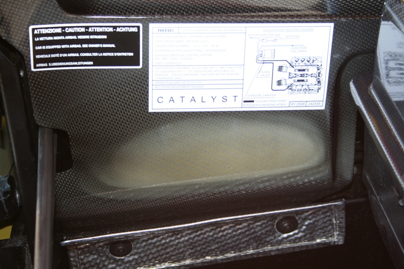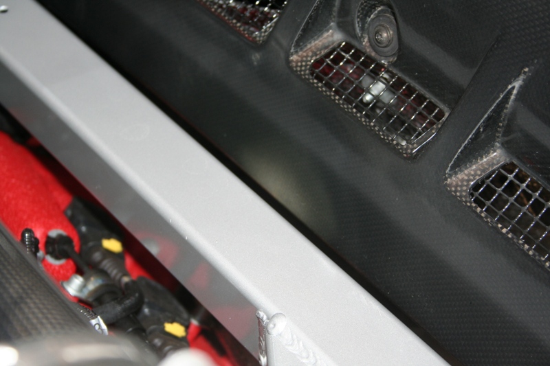 For owners of a Scuderia, there's a current campaign regarding the discoloration of the C/F in the engine compartment. I checked my car and sure enough there's major discoloration. I'm told the fix will be new c/f engine compartment panels and new heat shields. The current heat shields are very small and I'm told the new ones will be much larger and will be hand bent by the dealer techs to cover more of the c/f. As for the discoloration up in the middle of the engine compartment, it seems like they don't have a fix for that yet and will probably end up replacing the c/f again? I'm told by my dealer that I'll be the first one to have the c/f replaced. Love being the first...not.