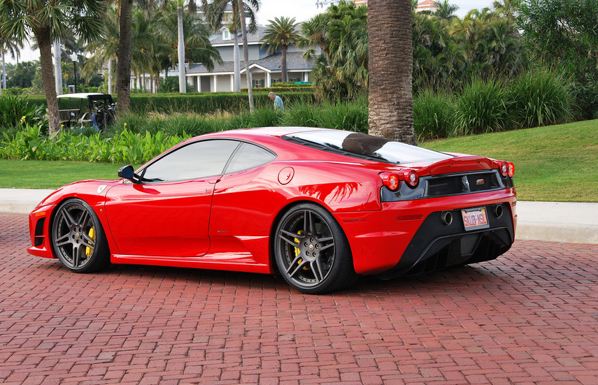 "Here are some pics of the Ferrari Scuderia 16M with the Novitec Rosso/KW HLS-2 kit. The Scuderia was delivered to us from the dealership at a rally car ride height with 2+ inches of fender gap. We actually considered putting on mud flaps.