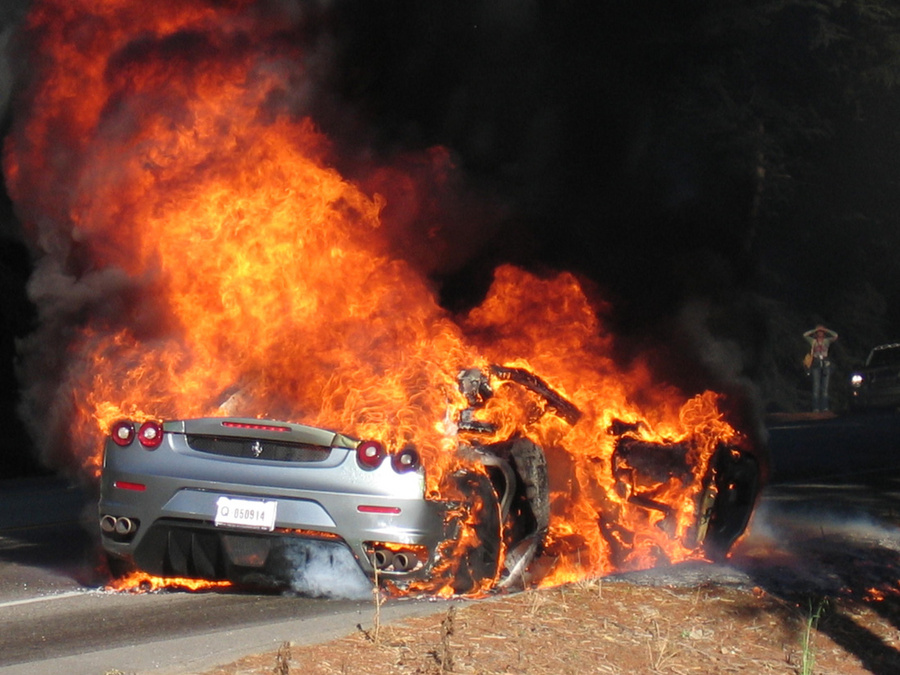 Ferrari 360 Modena Burns On LA Freeway