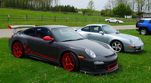 The 993 is Polar Silver and is an "old school" air cooled 911 Turbo. The 993 is, imo, the best looking of the 911 evolution.