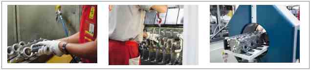 Here two robots – called Romeo and Juliet, given the complementary nature of the operations that they carry out – insert steel seats and guides (cooled to -196 degrees at the minimum dilation) into the head (which is heated to +180 degrees at the maximum dilation). The two components eventually unite and, on returning to room temperature, become solid without the need for any further operation. It was interesting to see that each component is photographed and scanned by a machine that, if it detects even the slightest defect in shape, rejects it immediately.