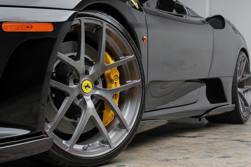 Here is a beautiful Ferrari F430 Spider equipped with a set of our ever-popular Modulare B18 forged monoblock wheels. The wheels measure 20x8.5 front and 20x12 rear and are finished in the gloss tinted brushed finish. The wheels were also fitted for the OEM Ferrari centercap.