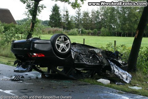 Being a big porsche fan, my buddy sent me this link of a wrecked turbo. Decription of the accident was "39 year old salesman from a loca Porsche dealership flipped the car 3 times than smashed into 3 trees. The driver suffered severe back injuries. " In the Netherlands.