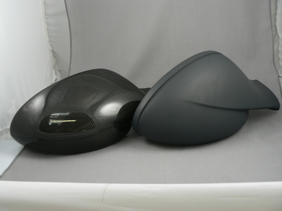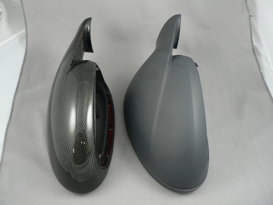 We just got some of the new 997.2 Porsche 997 mirrors in to do in carbon, and these things are HUGE! Look at them next to the old 997 mirrors. The new mirrors are about an inch taller, and half an inch deeper. I'll post some more pics when we get them done in carbon.