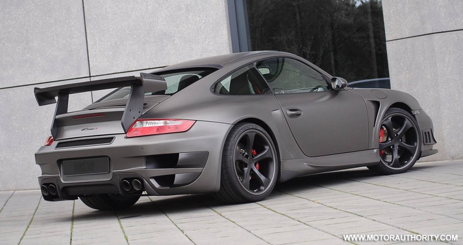 997 Porsche 911 Turbo, boosting output of the twin-turbo'd flat-six to 660 hp and 634 lb.-ft. of torque. The Techart GTstreet R benefits from a duo of new turbos, larger carbon fiber inlet pipes, revised intercoolers and a new cat-back exhaust mated to the revised manifold which all help to drop the 997's 0-60 time to 3.4 seconds when equipped with an auto 'box and 3.5 seconds with a manual. Top speed is a claimed 214 mph.