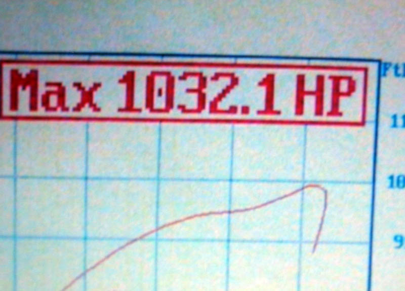 "Here is the proof when it broke the first 4 digits guys at 2.0bar and we did go up to 39psi like I said before. No heads lifting and all seems good for now. As soon as we hit the 4 digit torque number dyno was stopped, b/c two straps broke plus tires were smoking. The motor was taken out 4 times and re-torqued b/n 3 heat cycles at different Revs and all this when Todd K. was present. I consider myself blessed with the man being present to live tune the car. Thanks to Tial for the amazing turbos you sent me and thanks to BBi for the ultimate Rocket!!"
