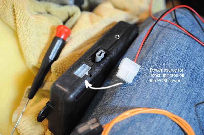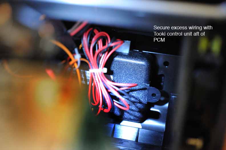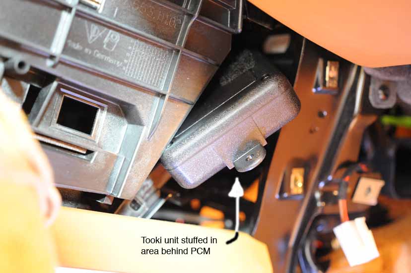 9. Position the Tooki unit well back in the hollow of the PCM opening so that when you push the PCM back to its fully installed position, it isn't pushing up against the Tooki unit and unable to be seated.