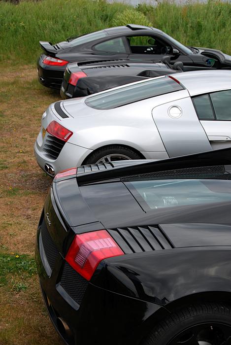 The R8 was very impressive. At no time did it hold anyone up. It is very balanced in the turns, maybe lacks pull at the higher end, but we never saw north of 160 which is where i suspect it would show. I had a short drive in the car and there are a few things i didnt like. The brakes are way too over assisted. You have no feel then bang they kick in hard. The clutch pedal has no feel at all and the gear lever is the same. The car felt wide, and I've previously owned a gallardo and 360, and it felt wider than that. (not an issue in the US i know). It turned a lot of heads though, and given the company we were in that surprised me. Its not a car id personally buy but i can see why people do.