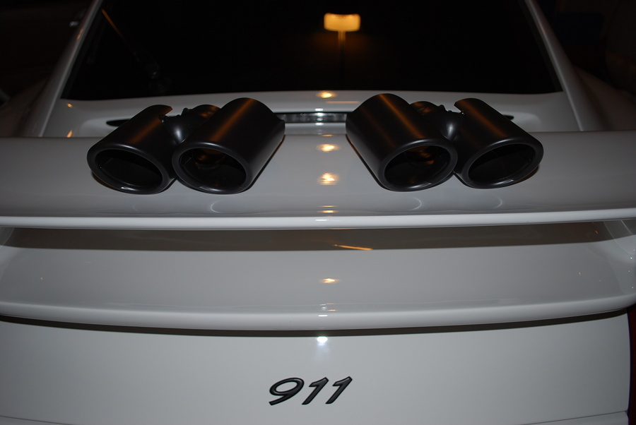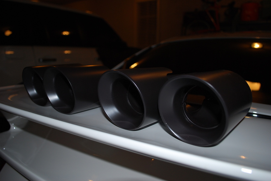 Here are pics of what look like BRAND NEW exhaust tips. I sent them to Justin @ RennSport One to be ceramic coated and they look SICK. The first set are Fabspeed tips and the 2nd set are stock quad tips.