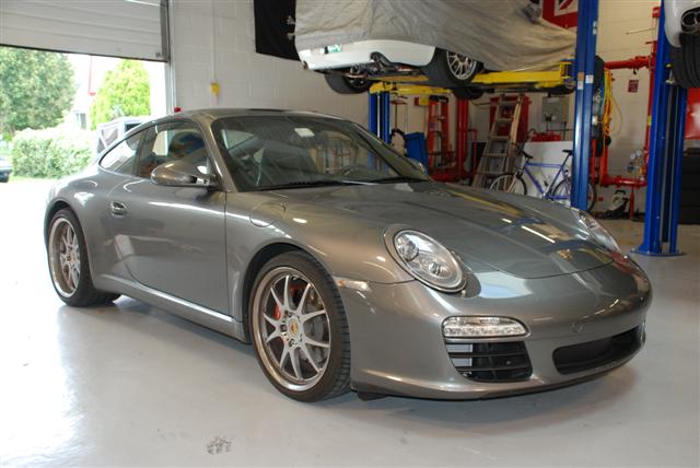 We just installed our Fabspeed Dual Tone Maxflo mufflers with the Sport Loud option, Carbon Fiber Air Intake and Quad style Tips on a 2009 Meteor Grey 997.2. He was curious on the sound difference between the Sport/Loud and the Medium/Quiet option, so I took him for a spin in our White 997.2 and he was thrilled about the Sport loud setup.