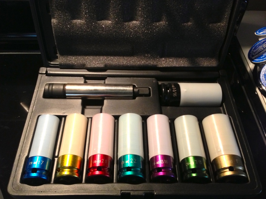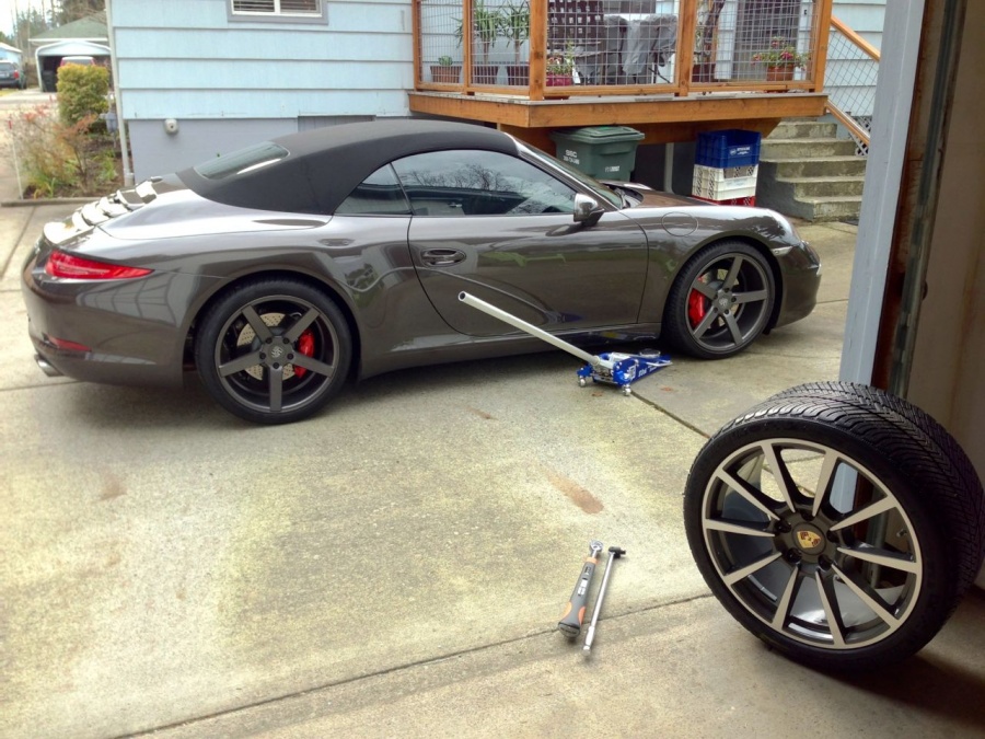 Got the wheels and tires on for winter! Was waiting for Griot's wheel lug adapter set and it came today. It's really a nice little set, plastic covers over the lug adapters so as not to damage the wheels, and its own case.