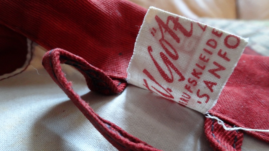 I own three factory uniforms from Porsche's past (last photos). Two 'Blues' and one 'Red'. I found one of my 'Blue' at a recent memorabilia meet. The other 'Blue' I liberated on a personal visit to the factory in 1996! Don't ask me how - it's a state secret! The 'Red' Porsche factory uniform is really old. It probably dates back to the late fifties or early sixties. On the 'blue' uniforms, the Porsche logo is found in a pre-made 'label' which is then sewn on the front of the uniform! But on the 'Red' uniform, the logo is beautifully embroidered in thick yellow thread! I purchased this example from a ex-factory worker that had kept this uniform for over 40 years since he left the company! All three garments are made in Germany by a uniform company called 'W. Golz', as best as I can make that name out.