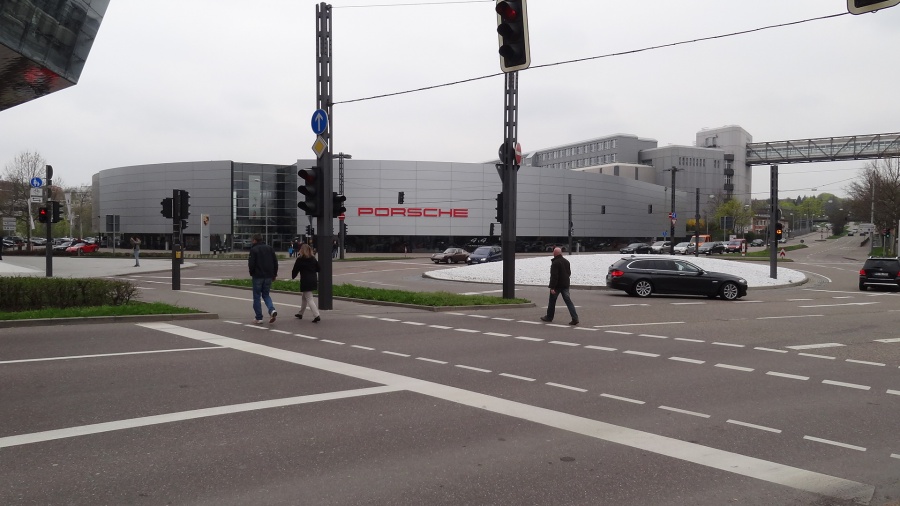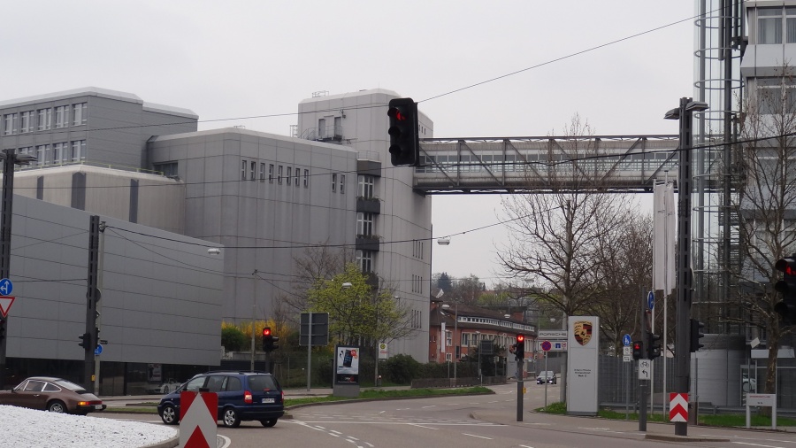 The one thing you notice on every new trip to Zuffenhausen is how much Porsche is expanding its facilities in this suburb of Stuttgart! I have already talked about the paint facility across from Werk II, which seats behind Werk I (see photo #1) which has been there for a while. There are now new buildings on 'Strohgäustraße' which are connected to Werk II via a walking bridge over that street. That is now called Werk III (see photo 2, 3 & 4). Porsche now controls many other buildings around Werk I & II that, when I first visited in 1981, used to belong to various vendors, subcontractors and independent businesses! It is also believed that Porsche recently acquired a large facility formerly owned by ITT on the other side of the S6 railroad tracks, way in back of the new Porsche Museum! Apparently, future expansion for Porsche in Zuffenhausen will come from this area across the 'Neuwirtshaus / Porscheplatz' railroad station! This western part of Zuffenhausen is particularly desirable because of the easy access to Route 10 and the Autobahn located just a few minutes away (E41/81). That all has vital importance in a production environment that relies heavily in 'just in time' and 'just in sequence' arrivals of key components from its vendors! The most frequently used word in the German auto industry today is 'Logistics'!