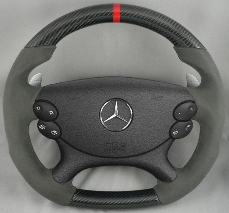 We jost did this wheel for a good customer of ours. We did this wheel in Grey alcantara with carbon top, and bottom, and a red 12 o'clock ring. These Black Series wheel are super chunky and feel really good in your hands.