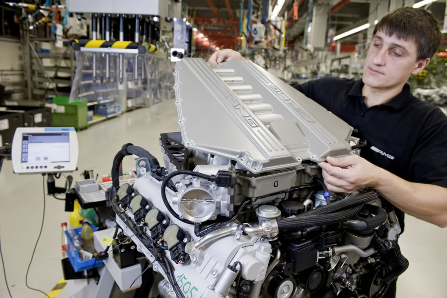 Despite these higher loads, the engine weight for the M159 has been further reduced. The forged pistons as oscillating masses play a particularly valuable role in this respect. Thanks to targeted weight optimisation, the weight of the engine has been reduced further, resulting in a kerb weight of 206 kilograms and, in turn, a power-to-weight ratio of 0.36 kg/hp. The AMG 6.3-litre V8 engine thus delivers the best figure by far compared with its competitors.