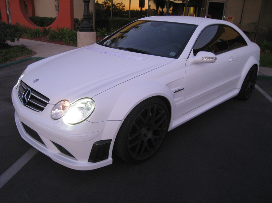 With that said, here are some pictures of the world's first CLK63 Black Series originally in silver, now wrapped in Satin White.