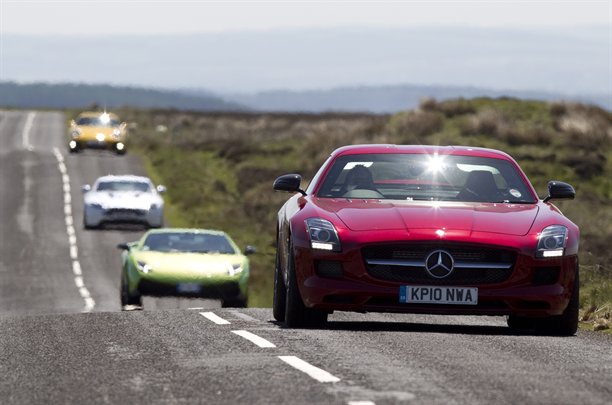 This is the ultimate supercar test - we're pitting the Mercedes SLS AMG, Aston Martin Vantage V12, Porsche 911 Turbo and Lamborghini Gallardo LP570-4 Superleggera head-to-head. Steve Sutcliffe reports. The Mercedes SLS is the new car on the block - albeit one wrapped in retro clothing. But don't let that fool you. Virtually the entire car is made from aluminium, including its spaceframe chassis, yet the overall rigidity of the structure remains high.