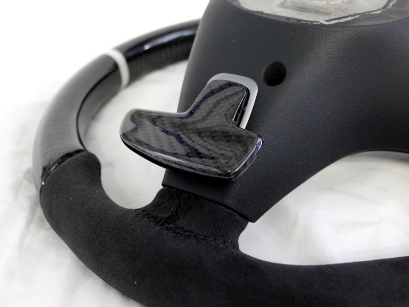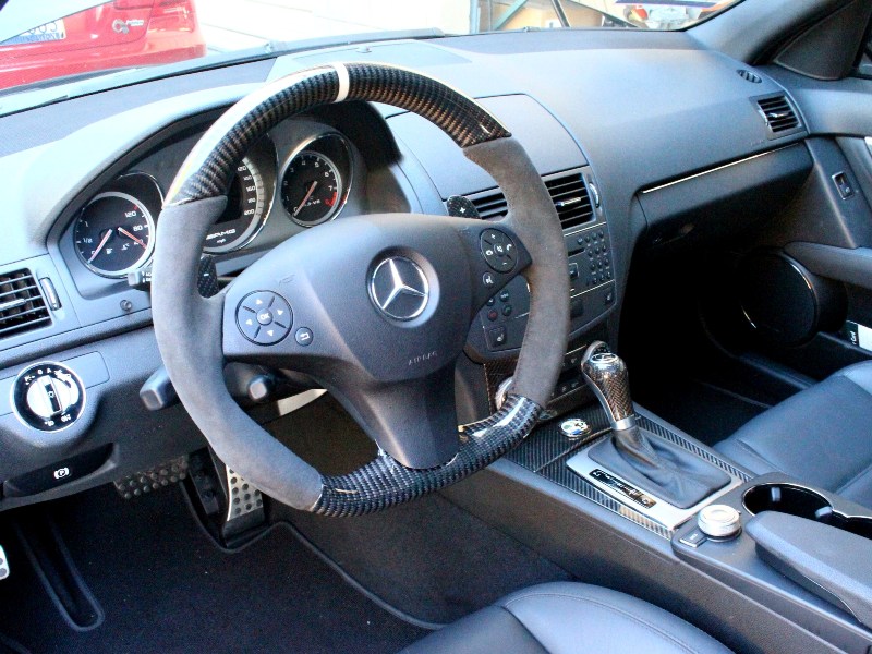 C63 carbon steering wheel with AMG carbon paddles and matched C63 carbon shift knob