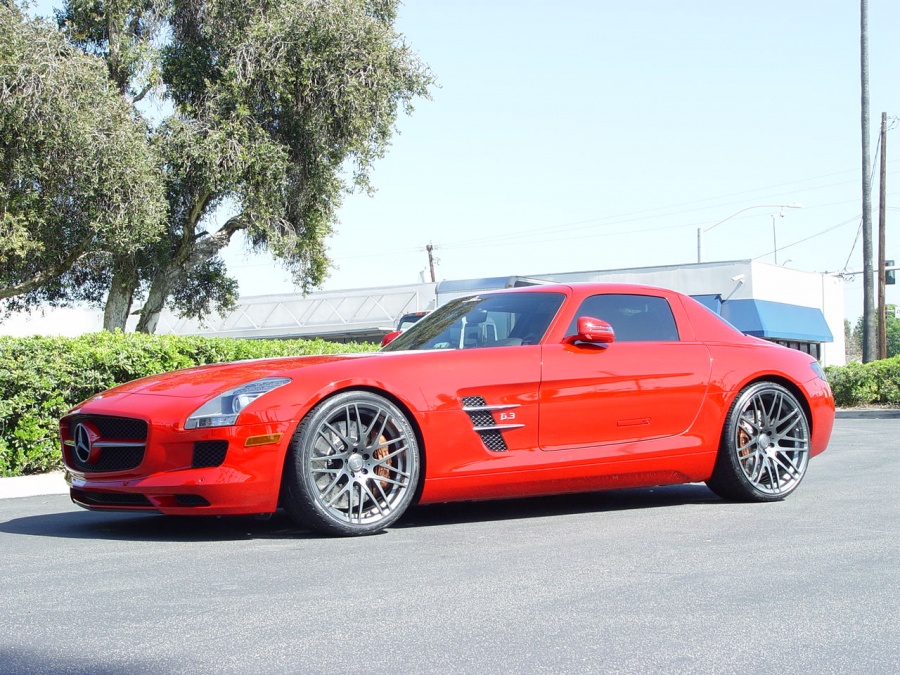 BRABUS makes a specific wheel application for the SLS, we offer the Monoblock F in a 9.5x20 for the front and 11.0x21 for the rear. These wheels are fit specific for the SLS and use the factory lug hardware. The wheels are a 1pc Forged and the rear wheels are 26.4LBS