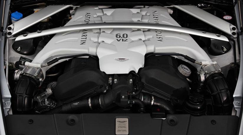 To make the V12 concept a reality, the engine is essentially the same 5.9-litre V12 you’ll find in the DBS. The plumbing is slightly different (and there are some carbon bonnet vents to extract the extra heat), but you still get 510bhp and 420lb ft, plus active valves in the exhaust that woofle on start-up, bark monstrously when you blip the throttle and cry loudly when you home in on 7000rpm.