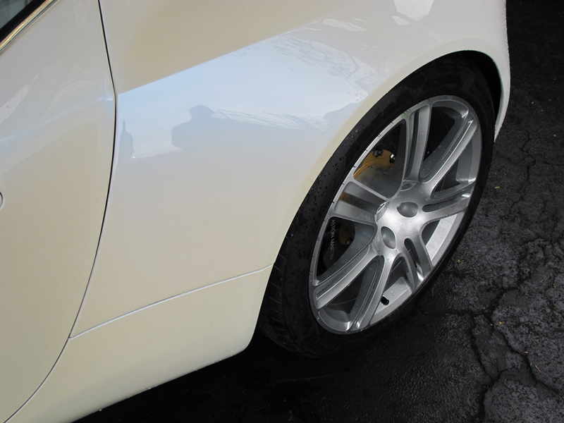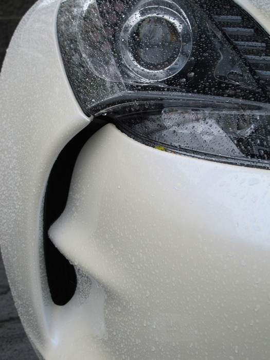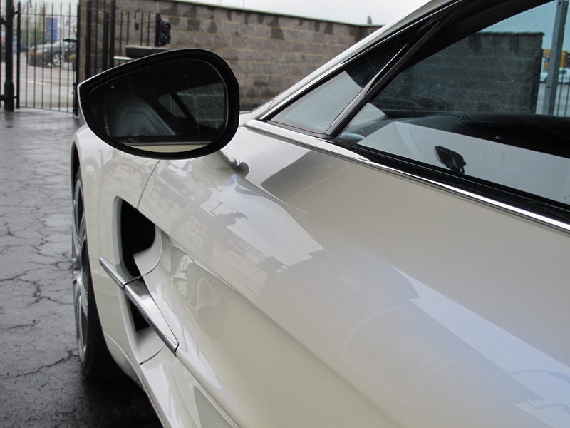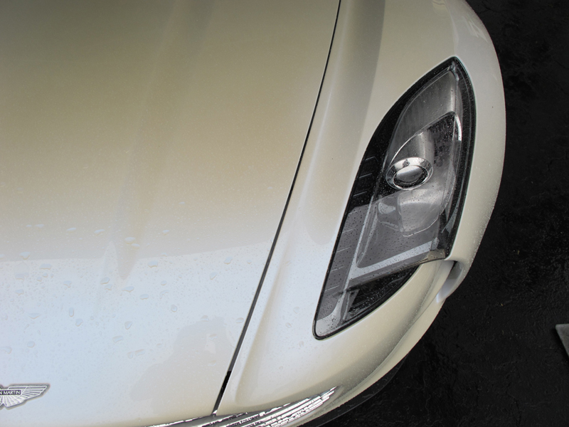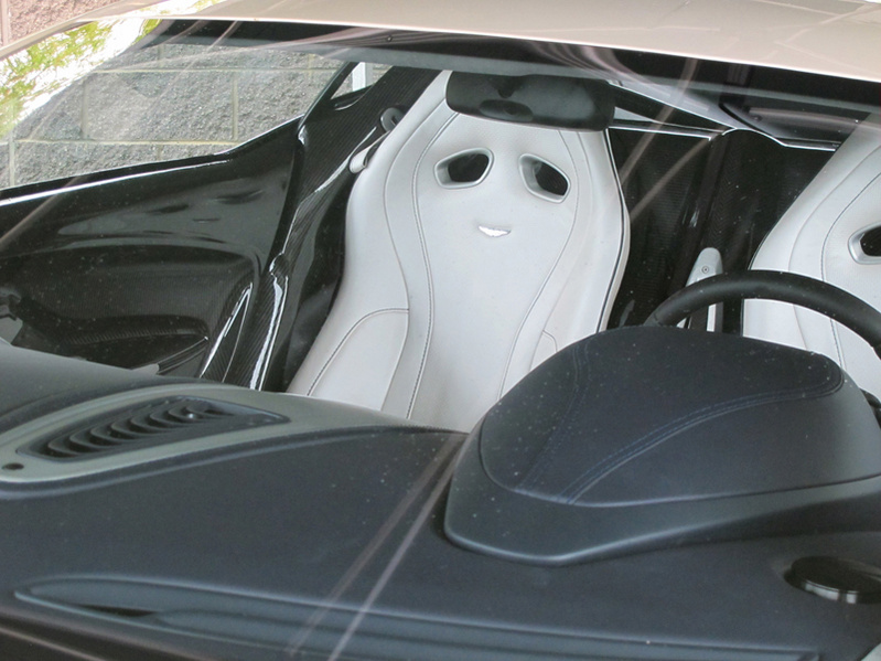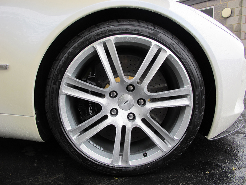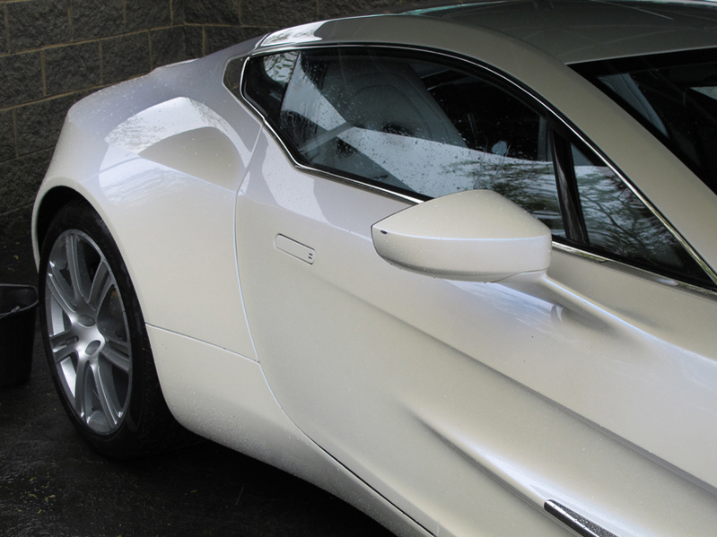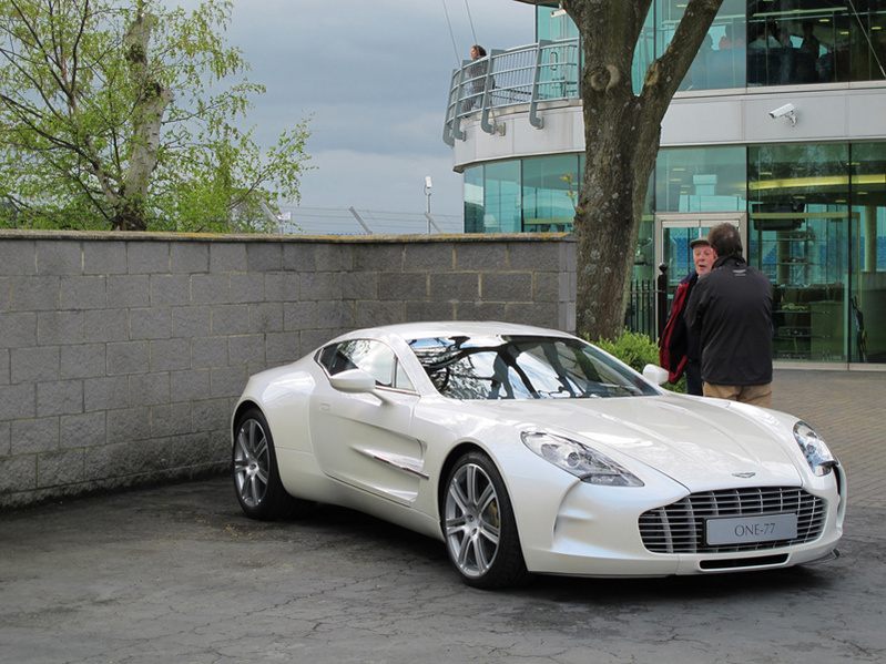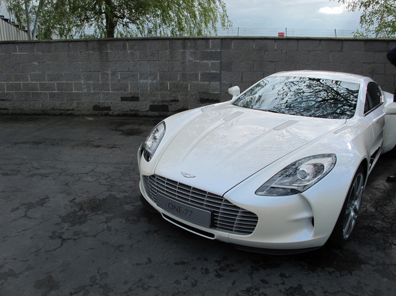 As promised, here are some pictures I took at Silverstone on Sunday of the One-77. The weather was crap and so was the light (especially with a canopy over the top), but they give an idea. Apparently, this is still a prototype, so the interior was only 60% accurate (it had a DB9 steering wheel and the switches/buttons were fake). Without wishing to sound contrived, the pictures do not do it justice... It's HUGE. The pearl paint worked well too, though I wouldn't spec it that way should I find £1.4m somewhere. Enjoy the pics.