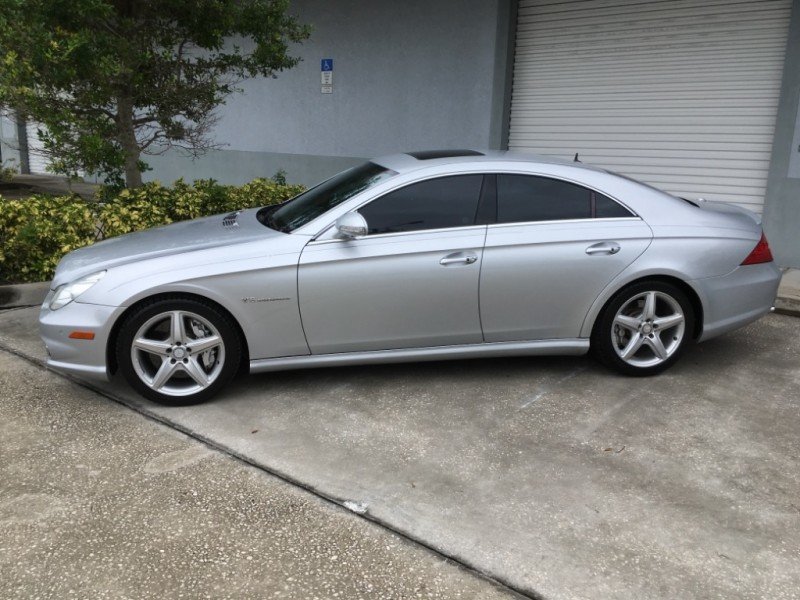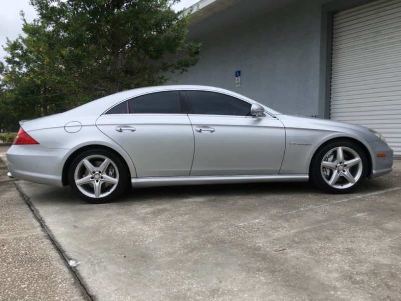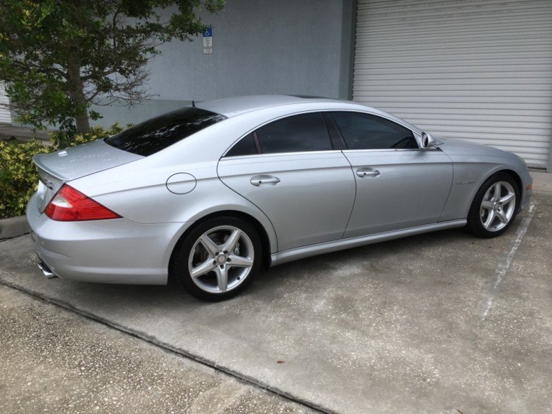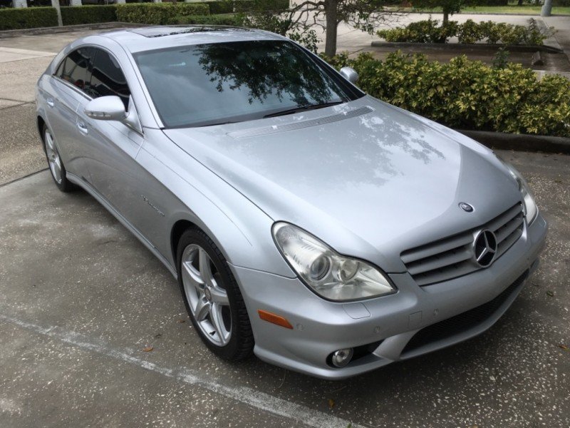 Here is a beautiful silver 2006 Mercedes Benz CLS55 AMG with black leather and tinted windows. It (of course) has the extremely desirable and cult-classic Supercharged (Kompressor) 5.4 liter engine.
