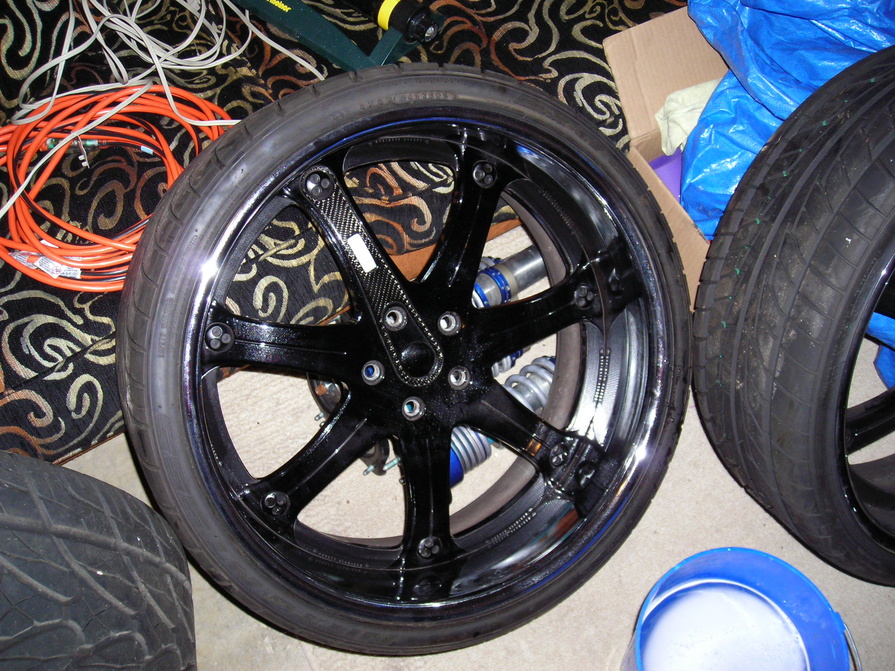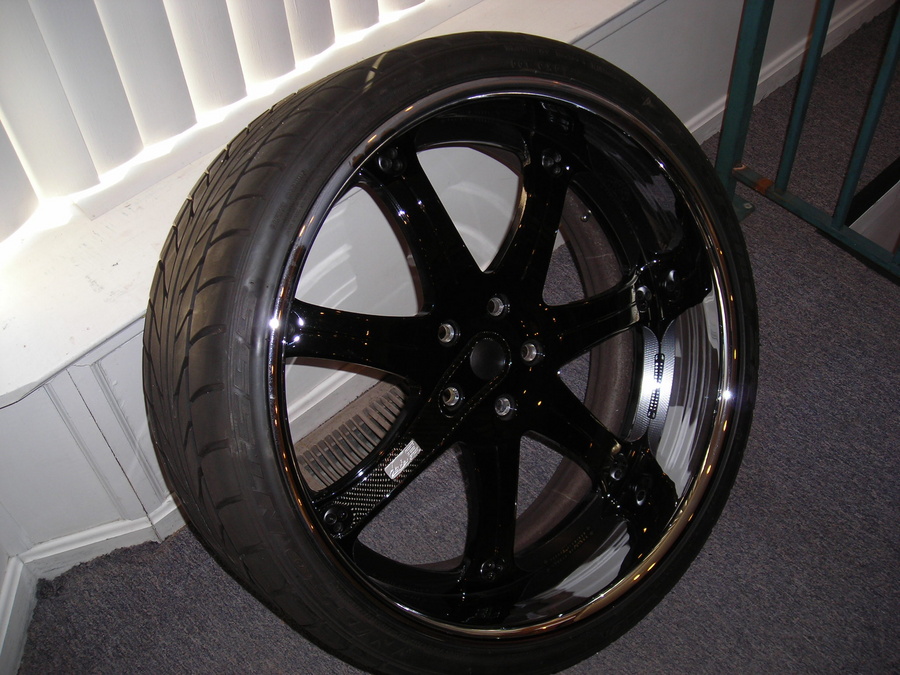 2. Davin's with Carbon Fiber Inlay, Black centers w/ chrome lip, same sizes, same tires. Customer paid $8,000 and put 750 miles on them. (he wanted wheels while the gfg's were getting built??? I know, who am I to say no.)