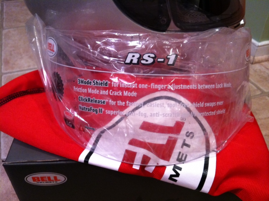 This is a size large Bell RS1 that comes with both the factory clear shield as well as the SOLFX Transitions Shield which will darken/lighten based on sun conditions. Its amazing to watch happen. It will go from completely shaded/dark in full sun to completely clear at night. Its awesome to never compromise on visibility or be caught with the wrong shield. The transitions shield alone was $120.