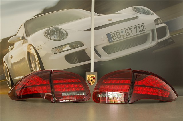 For sale: A set of new Porsche Cayenne tailligts, from the Tequipment catalogue. Red/black.