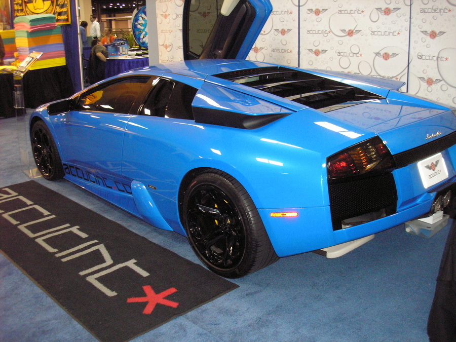 That's John's (Rushdriven) car...color is actually very nice, blue ely I think is the actual color (don't quote me on that)...and looks way better in person than in photos...matter of personal taste really. Many of the Lambo colors don't photograph well. His car is really nice though...the black wheels really set the car off...shoulda seen it with factory 03 wheels on it...blek...now, two thumbs up.