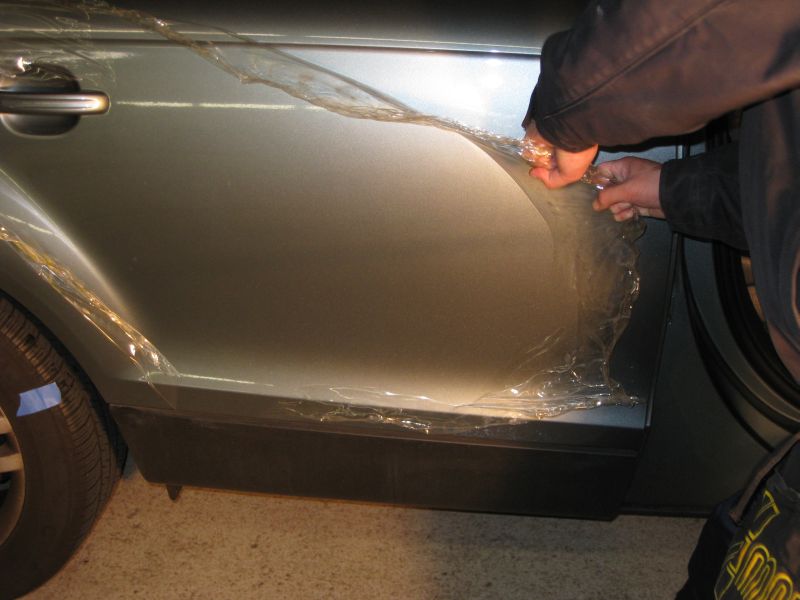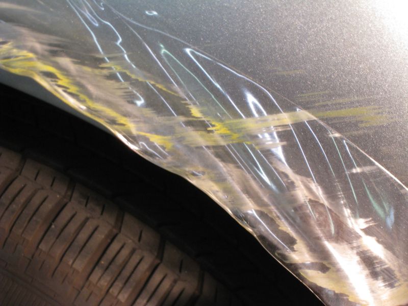 Below are pictures of a vehicle we did and the vehicle owner's wife swiped a concrete wall while turning into a parking lot. Initially our customer thought there was definitely paint damage and received a quote to repaint that door and blend the rear quarter panel as well for $1600. In addition, it would take 8 days to complete. We pulled the film off and no damage whatsoever. 2 hours later, the customer goes home with new film on the car vs. over 1 week at the bodyshop and aftermarket paint.